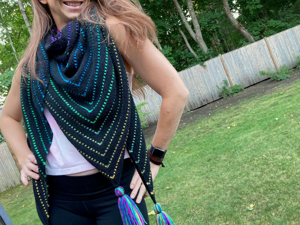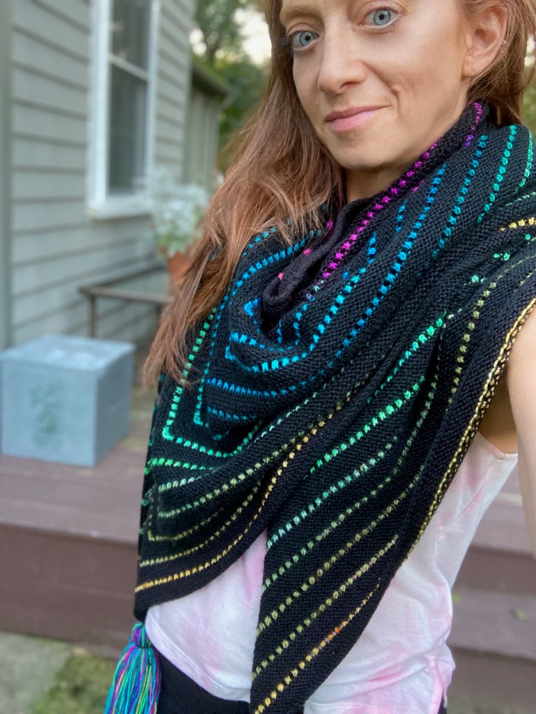 I was so excited to have blocked and finished my first Second Chance Shawl that I had to take photos right away:
